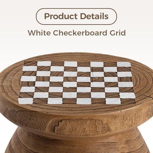 Dokulu Ahşap Satranç Tablalı Dekoratif Yan Sehpa