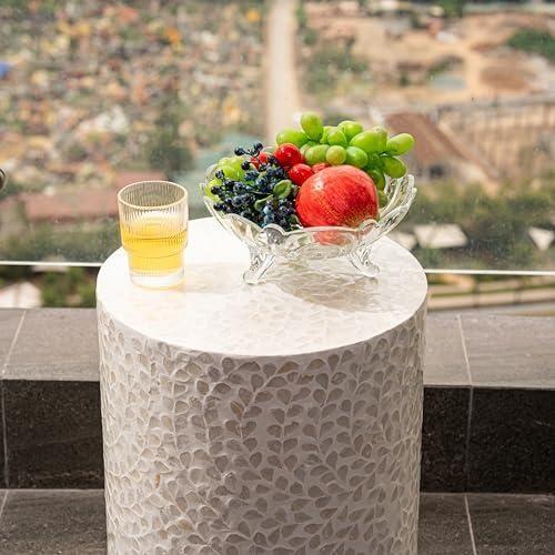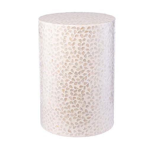 Bu dekoratif sehpa, modern ve şık iç mekan düzenlemeleri için ideal bir aksesuar niteliğinde. Yaklaşık 33 cm çapında ve 49 cm yüksekliğinde silindirik formda tasarlanmış. Doğal ahşap malzeme üzerine sedef kabuğu ile kaplanmış, el yapımı bir ürün.