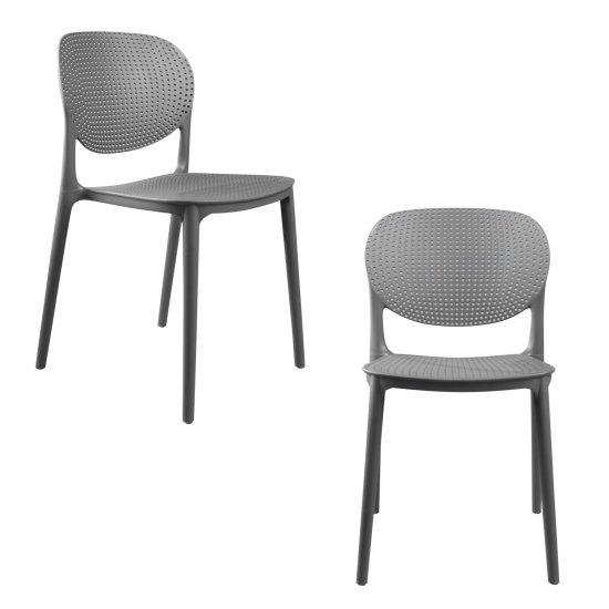 Bu delikli sandalye seti, modern ve çok yönlü bir tasarıma sahiptir. Gri renkte üretilen sandalyeler, yumuşak hatları ve minimalist görünümüyle dikkat çekiyor. Özel delikli tasarımı, sandalyelere hafif ve şık bir görünüm kazandırırken aynı zamanda hava dolaşımını da sağlıyor.