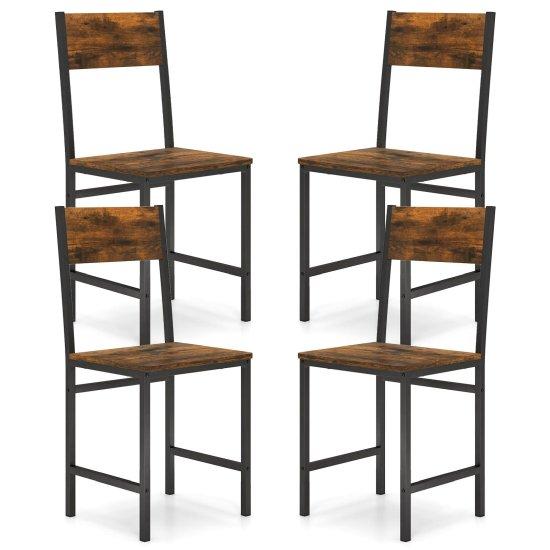 Sandalye seti dört ayrı sandalyeden oluşuyor. Kompakt boyutları sayesinde küçük ve orta ölçekli mekanlara rahatlıkla uyum sağlayabilir. Ahşap dokulu yüzeyi ve siyah metal ayakları ile farklı dekorasyon stillerine uygun bir aksesuar olarak öne çıkıyor.