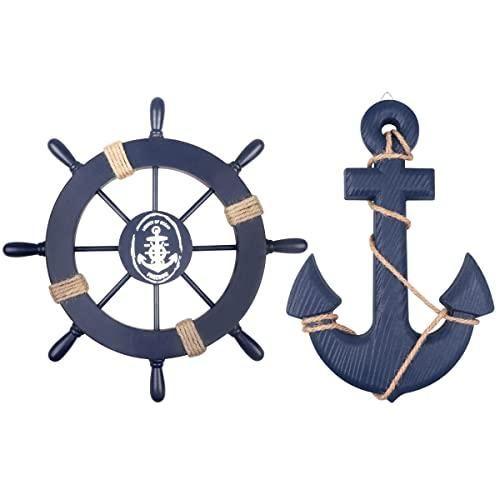 Deniz ve denizcilik ruhunu evinize taşıyan bu benzersiz dekoratif aksesuar seti, geleneksel denizciliğin sembollerini modern bir yorumla sunuyor. Lacivert renkte ahşaptan üretilen set, gemi dümenini ve çapaını içeriyor.
