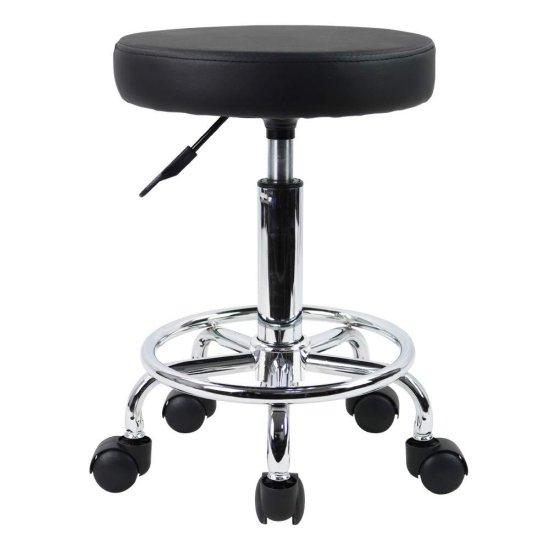 Bu tabure, profesyonel çalışma alanları için ideal bir oturma çözümü sunmaktadır. Siyah renkli yumuşak PU deri kaplaması, pürüzsüz ve parlak bir yüzey sergiliyor. Dayanıklı metal ayakları ve tekerlekleri sayesinde rahat hareket imkanı sağlıyor.
