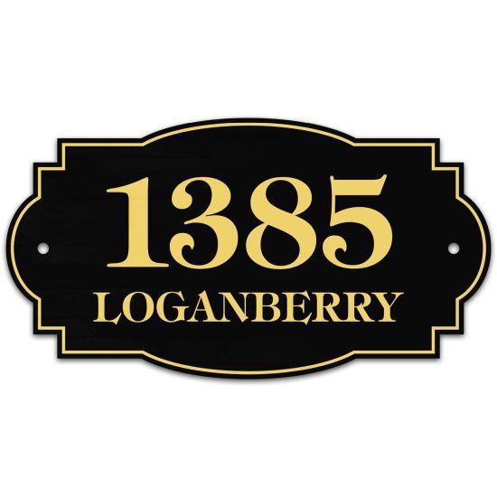 Klasik siyah zemin üzerine altın rengi yazılar, lüks ve sofistike bir görünüm oluşturur. Özel tasarlanmış çerçeve detayları, plakanın vintage cazibesini artırırken, modern evlere de şık bir kontrast katar.