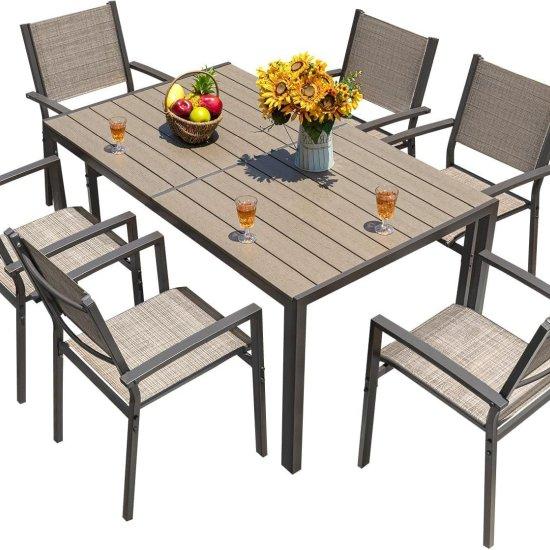 Modern Kahverengi Dokulu Dış Mekan Yemek Masası Seti