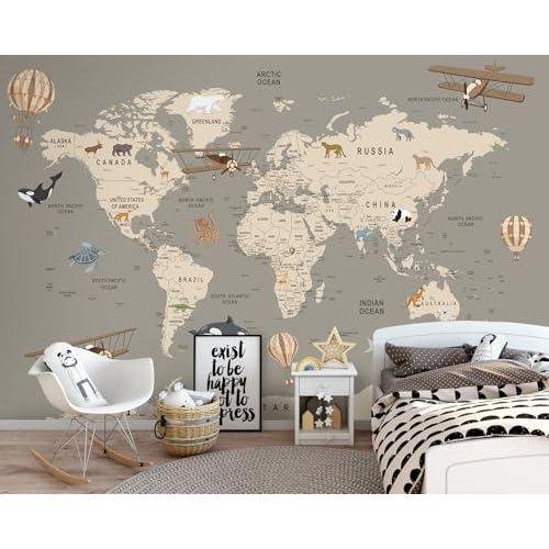 Dünya haritası duvar kağıdı, modern ve eğitici bir dekorasyon ürünüdür. Çocukların merak duygusunu besleyen, aynı zamanda odanın estetik görünümünü zenginleştiren benzersiz bir aksesuar olarak öne çıkar.