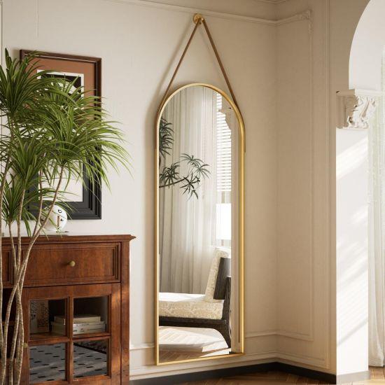 Duvar aynası, çok yönlü kullanımıyla dikkat çekiyor. Oturma odasında bir odak noktası olarak kullanılabilir, yatak odasında şık bir makyaj aynası görevi görebilir veya antrede misafirlerinizi karşılayan etkileyici bir parça olabilir. Zarif ve narin çerçeve yapısı, sadeliğin güzelliğini vurgulayan bir estetik anlayışı ortaya koyuyor. Altın tonu klasik ve çağdaş dekorasyon stillerine mükemmel uyum sağlıyor.
