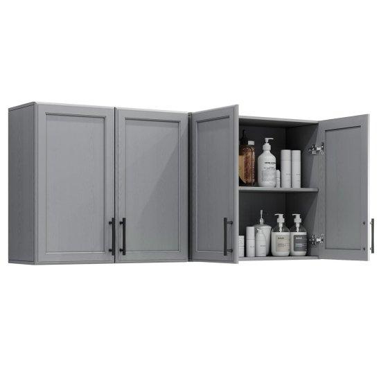 Bu duvar dolabı, mutfak, çamaşırhane veya depo alanları için ideal bir çözüm sunmaktadır. Gri renkte tasarlanan ürün, iki ayrı dolap ünitesinden oluşmaktadır. Her bir dolap, şık Shaker tarzı kapılara sahiptir ve içerisinde kullanışlı bir raf bulunmaktadır.