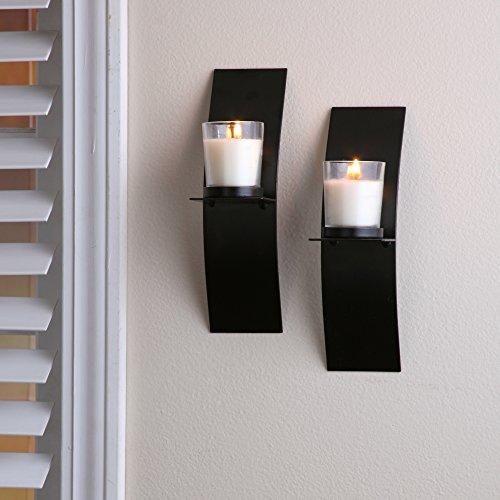Bu duvar şamdanları, minimalist ve çağdaş bir tasarımla ev dekorasyonunuza zarif bir dokunuş katacak. Siyah renkli metal gövdesi, eğimli ve dinamik bir forma sahip. Her bir şamdan, şeffaf cam mumluk ile tamamlanmış.