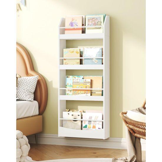 Duvara monte edilebilen bu kitaplık, çocuk odalarında ve kreşlerde kolayca kullanılabilir. Çocukların kitaplarına kolay erişimini sağlarken, aynı zamanda odanın dekoratif görünümüne katkıda bulunuyor. Beyaz rengi sayesinde hem modern hem de klasik dekor stillerine uyum sağlıyor.