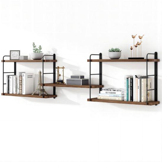 Endüstriyel ahşap malzemeden üretilen kitaplık, dayanıklı bir yapıya sahiptir. Metal bağlantı aparatları sayesinde duvara sağlam bir şekilde monte edilebilir. Yatak odası, çalışma odası veya oturma odası gibi farklı mekanlarda kullanılabilir.