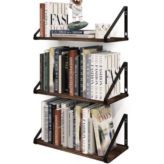 Rustik Ahşap Tonlarında 3 Katlı Modern Duvar Kitaplığı