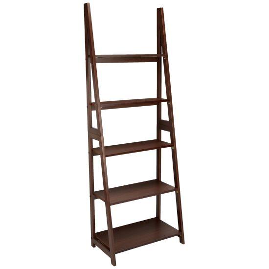 Eğimli merdiven tasarımı, minimal ve çağdaş bir görünüm sağlıyor. Raflar geniş ve sağlam, farklı boyutlardaki kitapları ve eşyaları rahatça barındırabilecek kapasitede. Koyu kahverengi rengi sayesinde neredeyse her dekor tarzıyla uyum sağlayabilir.
