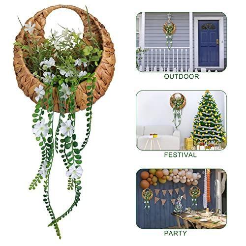 Doğal Hasır Örme Asma Yeşil Yapay Çiçek Aranjmanı