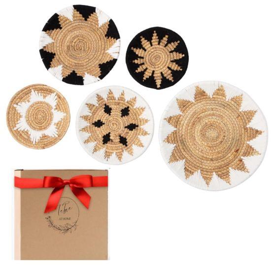Bu el yapımı duvar süsü, doğal bej tonlarında olup, organik ve sakin bir görünüm sunmaktadır. Bohem, rustik veya doğal temalı iç mekanlara mükemmel uyum sağlayacak bir parçadır. Aynı zamanda, geleneksel el sanatları ile modern tasarımın başarılı bir birleşimini temsil etmektedir.