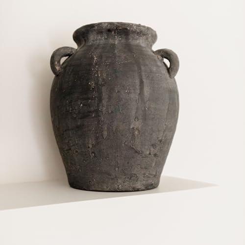 Yüksek kaliteli terrakotta malzemeden üretilen vazo, pürüzlü ve dokulu bir yüzeye sahip. Mat ve antik görünümü, vintage tarzı sevenler için ideal bir dekoratif aksesuar niteliğinde. Üç kulplu tasarımı ve geniş ağız yapısı, vazonun estetik çekiciliğini artırıyor.