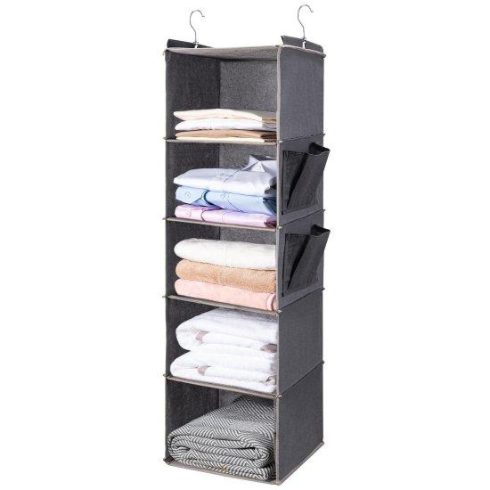 Gri Katlanabilir 5 Katlı Dolap İçi Düzenleyici Askılı Raf Organizeri