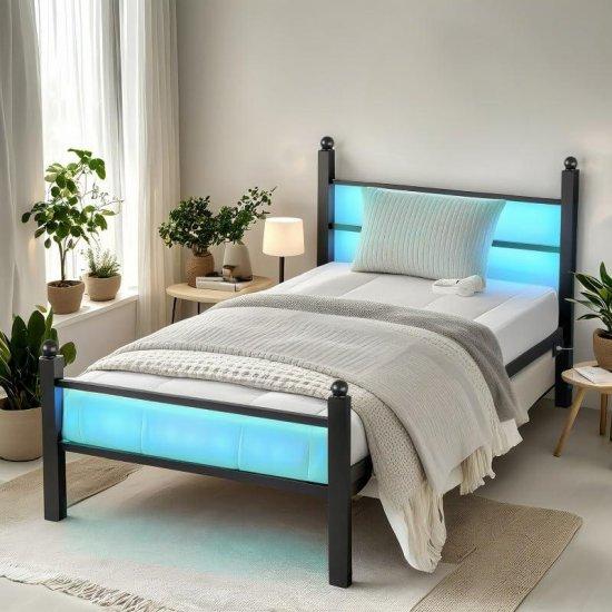 Modern Çelik Çerçeveli LED Aydınlatmalı Genç Erkek Yatağı