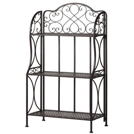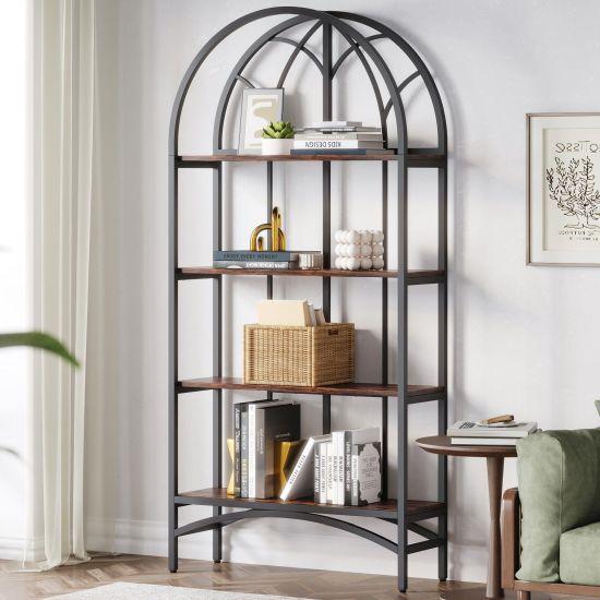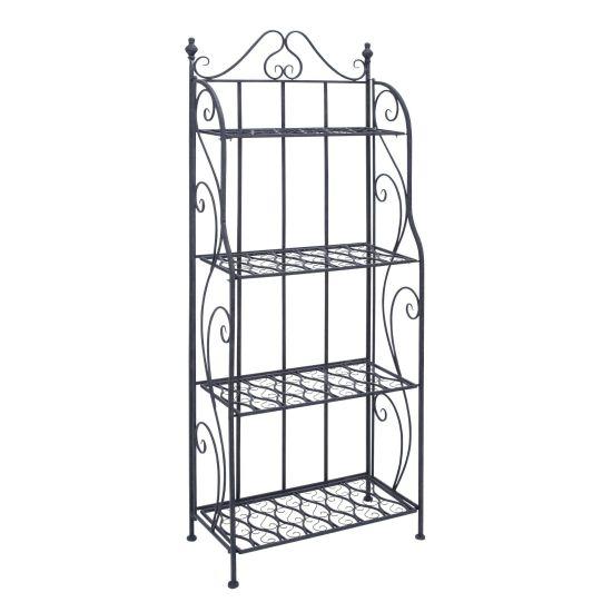 Bu dekoratif raf ünitesi, zarif ferforje tasarımı ve fonksiyonel yapısıyla her mekana şıklık katan bir aksesuar. Mat antrasit gri renkli metal çerçevesi, ince işlemeli süsleme detaylarıyla dikkat çekiyor. Dört ayrı ahşap raflı yapısı sayesinde kitap, bitki, süs eşyası veya dekoratif objeler için ideal bir yerleşim alanı sunuyor.