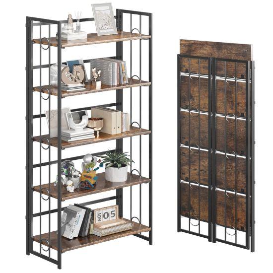 Endüstriyel Ahşap Rustik Ferforje 5 Katlı Kitaplık