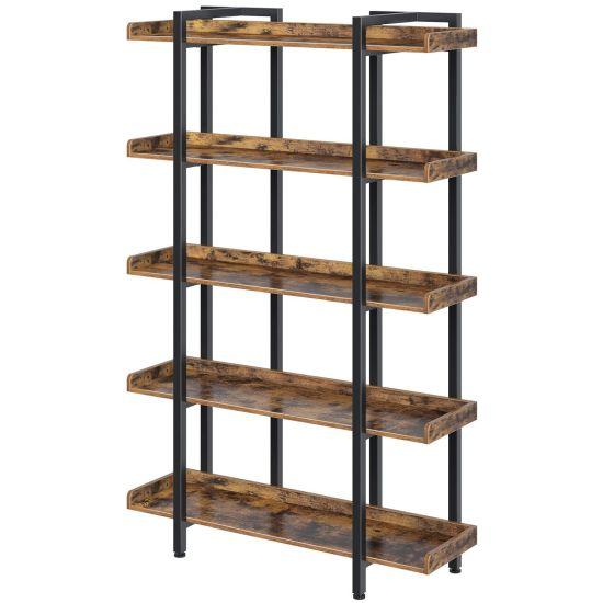 Modern ve rustik tarzı bir arada sunan bu kitaplık, ev içi depolama çözümlerinde benzersiz bir seçenek sunuyor. Sağlam endüstriyel ahşap ve siyah metal konstrüksiyon ile tasarlanmış 5 katlı bir kitaplıktır.