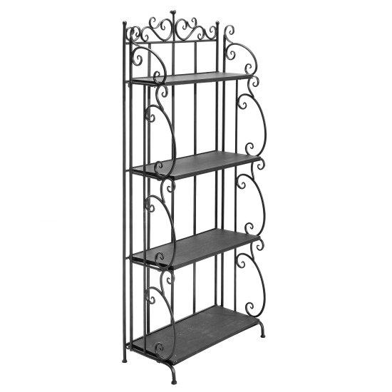 Bu dekoratif raf, geleneksel Viktorya tarzı tasarımıyla iç ve dış mekan düzenlemelerine şık bir dokunuş katıyor. Rustik kahverengi ferforje malzemeden üretilen raf, dört farklı rafıyla geniş bir depolama ve sergileme alanı sunuyor.