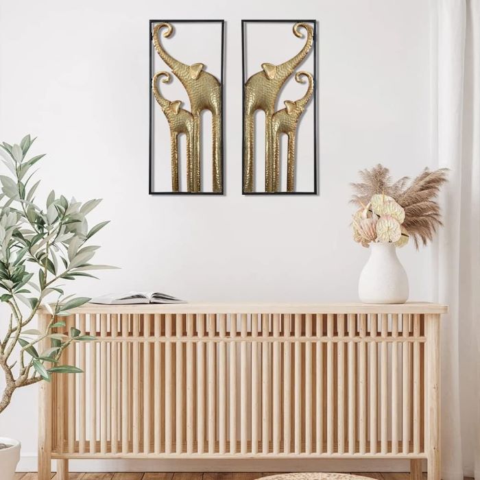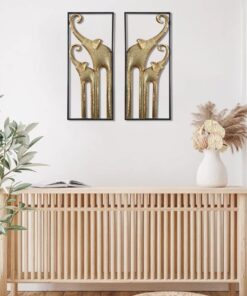 Bu etkileyici duvar dekoru seti, iki parçadan oluşan şık bir fil temalı tasarım sunuyor. Her bir parça, yaklaşık 5×70 cm boyutlarında olup, metalden üretilmiştir.
