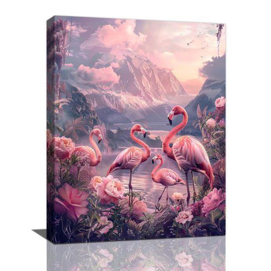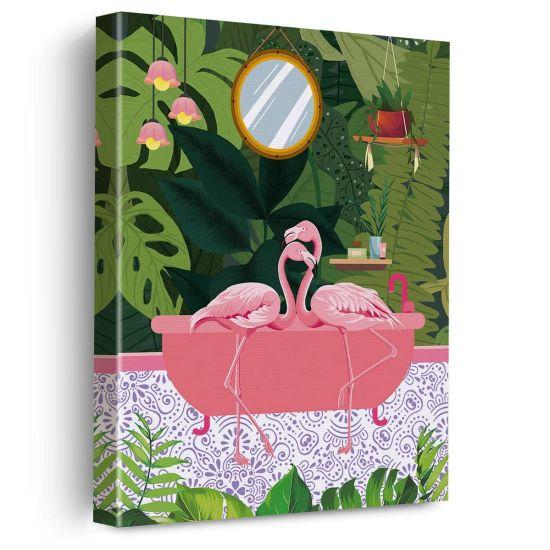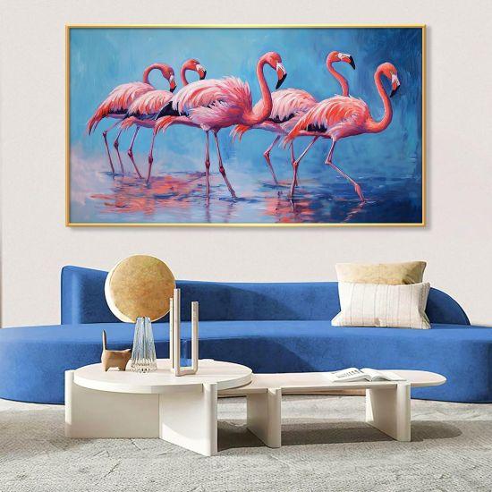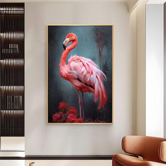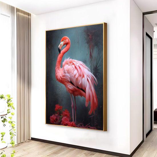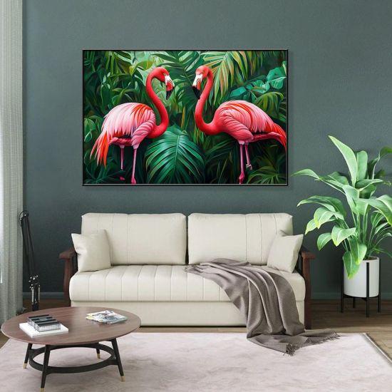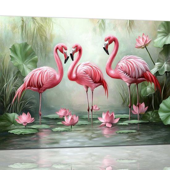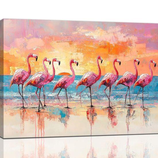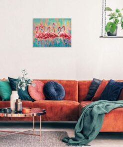 Bu etkileyici flamingo tablosu, evinize canlı ve neşeli bir atmosfer katacak harika bir sanat eseridir. Yaklaşık 61×81 cm boyutlarındaki bu kanvas tablo, duvarınızda göz alıcı bir odak noktası oluşturur.