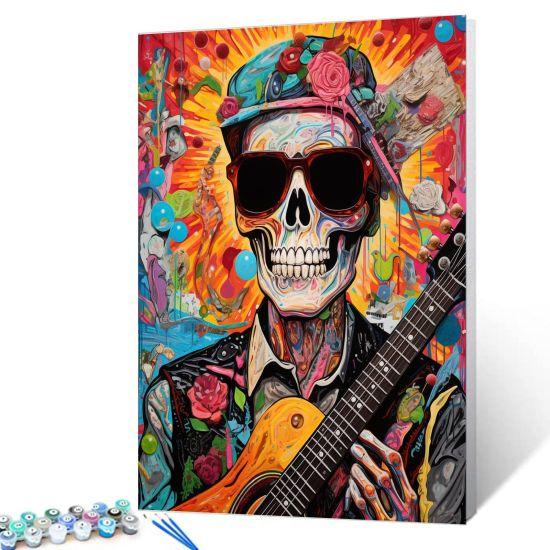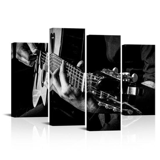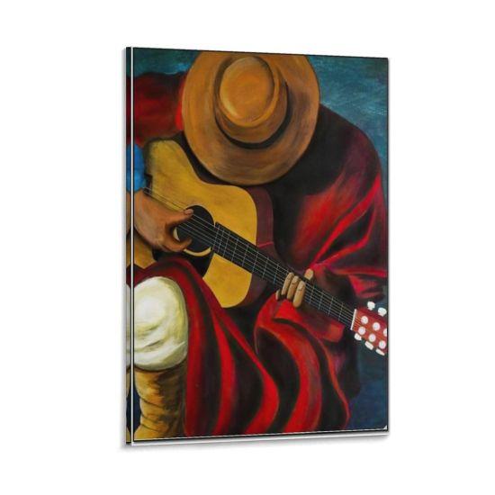 Tablonun merkezinde, bir gitar çalan figür yer alır. Figür, zayıf ve kırılgan bir görünüme sahiptir. Vücudu öne eğik, başı yana yatık bir şekilde resmedilmiştir. Bu duruş, figürün içinde bulunduğu duygusal durumu yansıtır. Figürün elleri ve ayakları, abartılı bir şekilde uzun ve ince çizilmiştir. Bu detay, resme ekspresyonist bir hava katar.