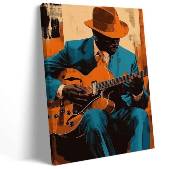 Figürün elinde tuttuğu gitar, tablodaki tek sıcak renkli öğedir. Kahverengi tonlarındaki gitar, mavi arka planla keskin bir kontrast oluşturur. Bu kontrast, gitarın figür için taşıdığı önemi vurgular.