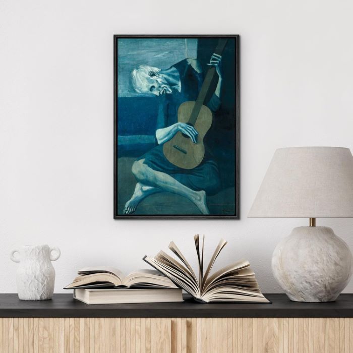 Bu etkileyici tablo, Pablo Picasso’nun ünlü “The Old Guitarist” eserinin bir reprodüksiyonudur. 61 cm x 92 cm boyutlarındaki bu eser, izleyiciyi derinden etkileyen bir atmosfer yaratır.