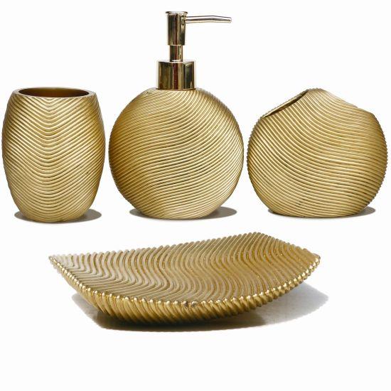 Altın Detaylı Seramik Banyo Aksesuar Seti