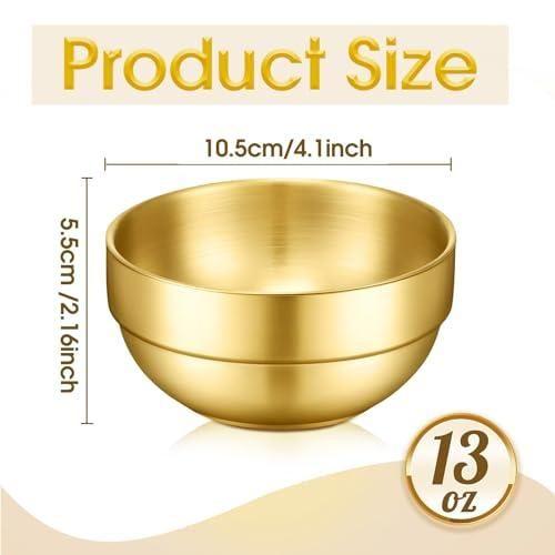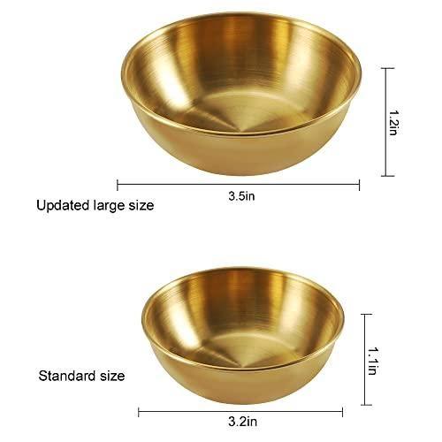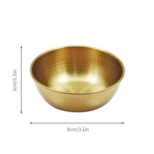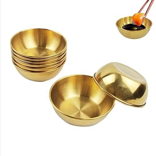 Her bir kap yaklaşık 8 cm çapında ve 3 cm derinliğinde olup, yaklaşık 100 ml sıvı alabilecek kompakt bir boyuta sahiptir. Parlak altın rengi, her türlü mutfak ve yemek masası dekorasyonuna zarifçe uyum sağlar.