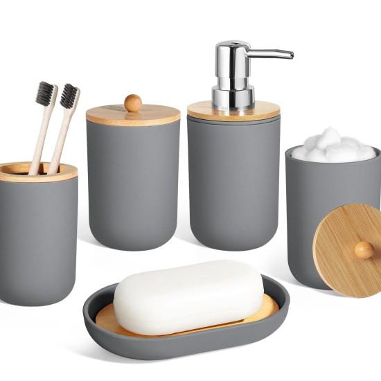 Modern Gri Bambu Detaylı Banyo Aksesuar Seti