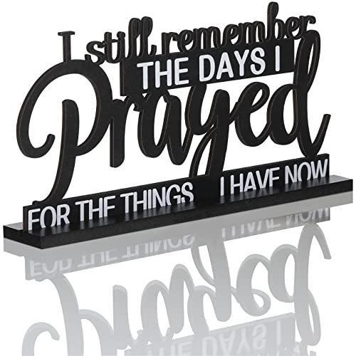 Modern ve çiftlik evi tarzını harmanlayan bu dekoratif aksesuar, ilham verici bir mesajla evinize şıklık katıyor. Siyah renkli ahşap malzemeden üretilen ürün, keskin ve net bir tipografiye sahip. “I still remember the days I prayed for the things I have now” (Şimdi sahip olduklarım için dua ettiğim günleri hatırlıyorum) yazısı, motivasyonel bir mesaj içeriyor.