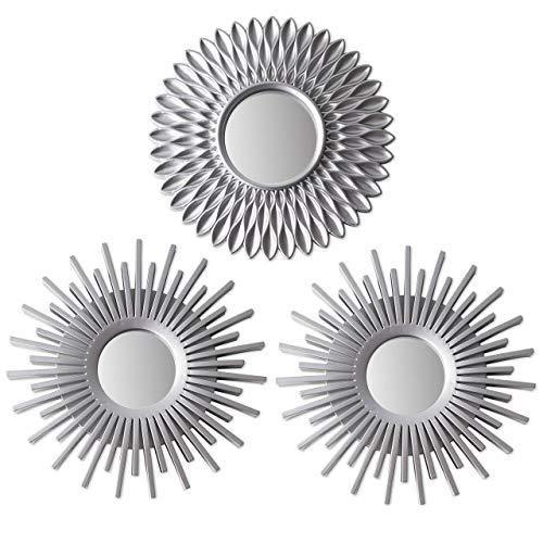 Set, biri daha büyük ikisi daha küçük olmak üzere toplam üç aynadan oluşuyor. Her bir ayna yaklaşık 25 cm genişliğinde ve plastik çerçeveli. Gümüş gri rengi sayesinde farklı dekorasyon stillerine kolayca uyum sağlayabilir. Yatak odası, salon, koridor veya ofis gibi çeşitli mekanlarda kullanılabilir.