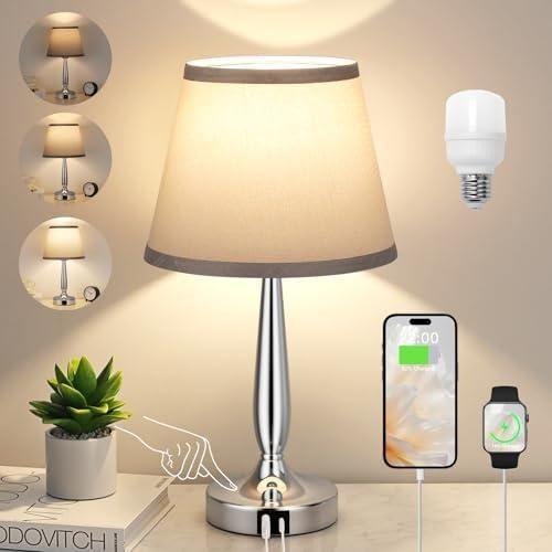 Modern Gri Dokunmatik USB’li Gümüş Abajur