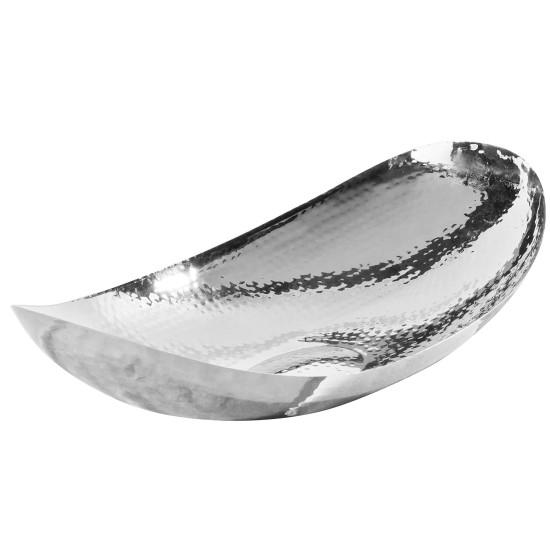 Bu dekoratif aksesuar, zarif ve modern bir tasarıma sahip gümüş renkli bir çanak. Oval formunda ve yumuşak eğimli kenarlarıyla dikkat çeken ürün, 43 cm genişliğinde ve 23 cm derinliğinde.