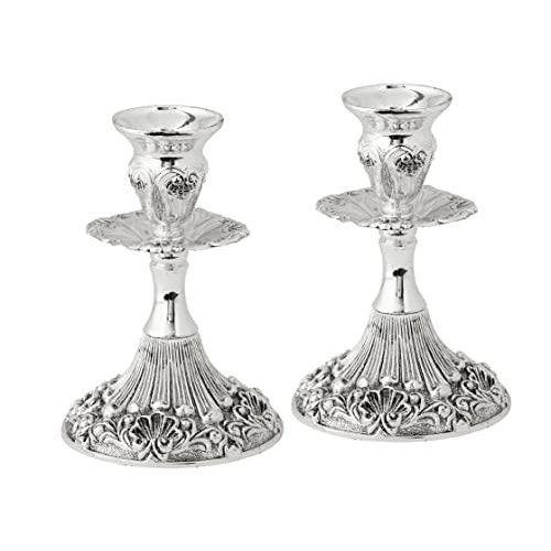 Gümüş İşlemeli Çiçek Desenli Klasik Mumluk Seti