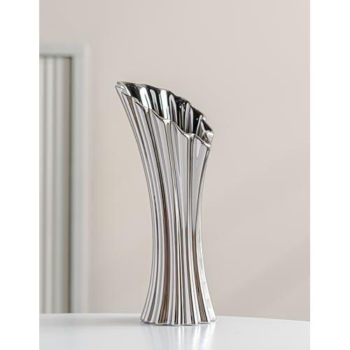 Modern Dalgalı Gümüş Dekoratif Vazo