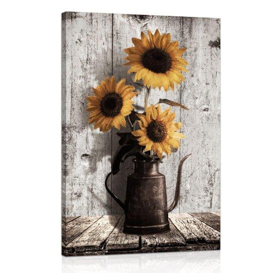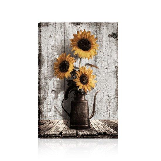 Rustik Sarı Güneş Çiçekli Tuval Tablo
