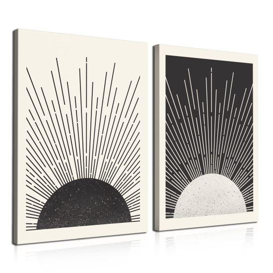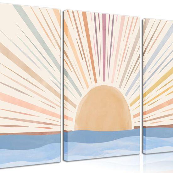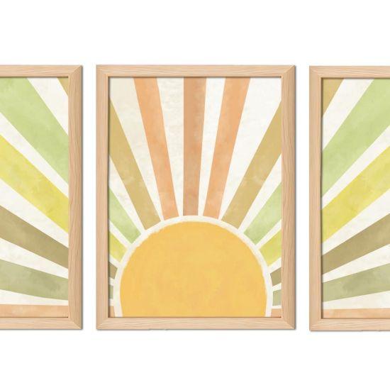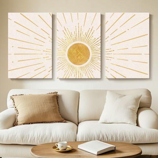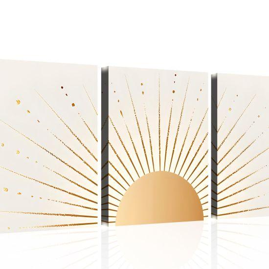 Minimalist Güneş Doğuşu Üçlü Kanvas Tablo