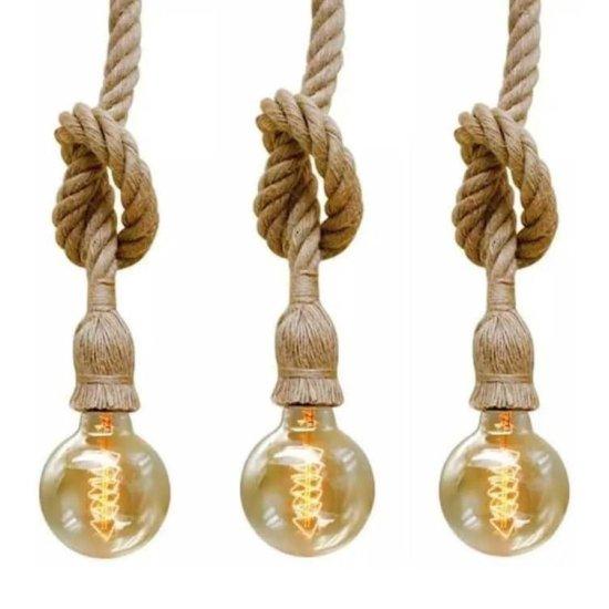 Bu dekoratif ürün, geleneksel çiftlik evi tarzını yansıtan benzersiz bir aydınlatma aksesuarıdır. Üç adet vintage görünümlü ampulden oluşan set, kalın hasır halatlarla desteklenerek asılmaktadır. Her bir lamba, doğal ve kaba dokulu halat kullanılarak el yapımı şekilde üretilmiştir.