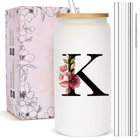 Bu özel bardak seti, kişiselleştirilmiş bir hediye arayışında olanlar için mükemmel bir seçim. Mat beyaz cam üzerine siyah “K” harfi ve etrafındaki zarif pembe çiçek detayları, bardağa şık ve özgün bir görünüm kazandırıyor.