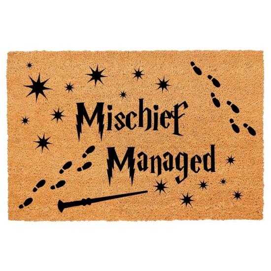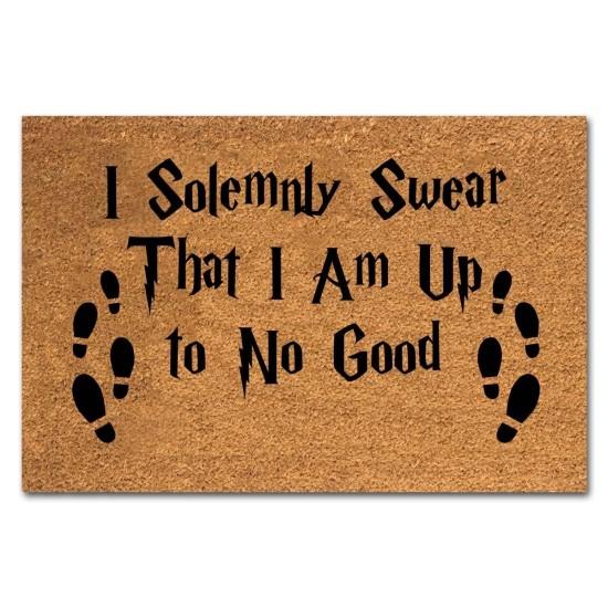 Bu paspas, hayranları için eğlenceli bir aksesuar niteliğinde. Kahverengi tonlarında doğal Hindistan cevizi lifinden üretilmiş zeminde, siyah harflerle “I Solemnly Swear That I Am Up to No Good” yazısı yer alıyor.