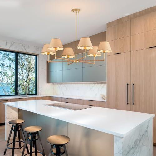 Doğal Hasır Detaylı Altın Sarısı 6 Kollu Modern Avize