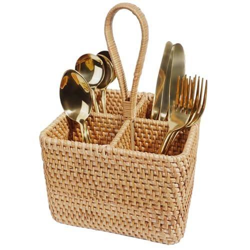 Yaklaşık 24 cm genişliğinde ve 11 cm yüksekliğinde olan ürün, çatal, kaşık, bıçak gibi mutfak gereçlerini düzenli ve kolay erişilebilir şekilde bir arada tutuyor. Hasır örme tekniğiyle üretilen malzeme, dayanıklı ve hafif bir yapıya sahip. Açık bej tonlarındaki rengi, modern ve minimal mutfak dekorasyonlarıyla mükemmel uyum sağlıyor.