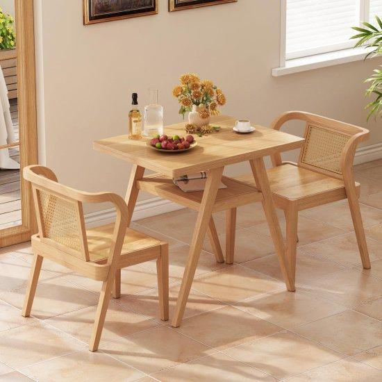 Bu yemek odası takımı, küçük mutfaklar ve yemek alanları için ideal. Kompakt tasarımı sayesinde az yer kaplıyor ve mekânı verimli kullanmanıza olanak sağlıyor. Doğal ahşap dokusunun yanı sıra hasır desenli sırtlar, modern ve rustik tarzı bir arada sunuyor.