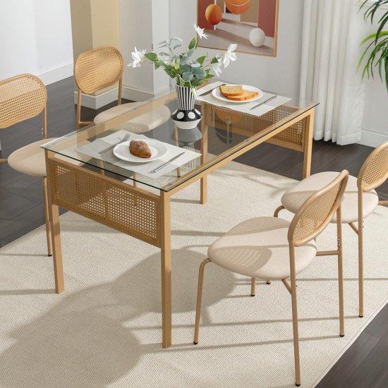 Modern Ahşap Çerçeveli Cam Hasır Yemek Masası Takımı