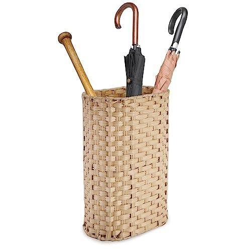 Özellikle dar alanlarda kullanım için ideal olan bu ürün, yalnızca şemsiyeler için değil, aynı zamanda bahçe aletleri, yüksek çizmeler ve çamaşırlar için de depolama alanı sağlıyor. Dokuma tekniğiyle üretilen hasır yüzeyi pürüzsüz ve yumuşak, herhangi bir çatlak veya keskin kenar içermiyor.
