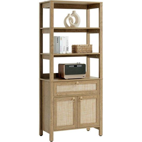 Yaklaşık 173 cm yüksekliğinde olan kitaplık, geniş depolama alanı sunuyor. Endüstriyel ahşaptan üretilmiş olup oldukça dayanıklıdır. Yumuşak ahşap dokusu ve nötr rengi ile farklı dekorasyon stillerine uyum sağlayabilir.